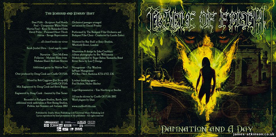 This album is brutal in its presentation. It blends the idea of those guttural snarls and high pitch vocals with the orchestra and choir. In other words it takes previous COF albums and creates a multi layered dark edge with a clean production and lavish soundscape. The lyrical content is typical Dani Filth. While it is clear what the songs mean in their whole form, the lyrical descriptions can be cryptic at best. Some I still have not worked out years down the line. Again, that is one of the reasons I have enjoyed what COF produce. It would be hard for them to come up with another concept of such scale as I suspect the budget will not allow it, as they are no longer with Sony. Of course, I could be wrong and we may one day see another such masterpiece.