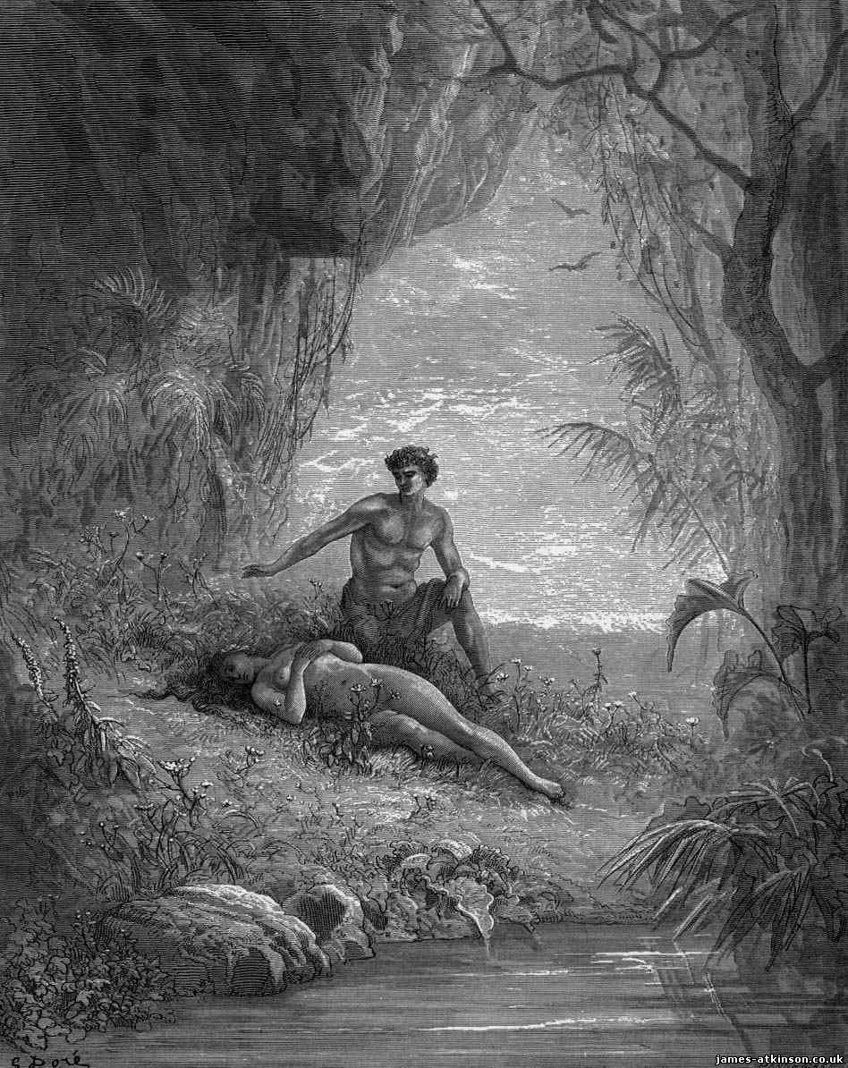 Continuing the brief synopsis of Paradise Lost we find Satan returning to earth and entering a serpent. It is through this serpent that Eve is seduced into eating the forbidden fruit. Adam finds no other way but to join her and suddenly they become aware of their nakedness. In hopelessness they are aggressive to each other. The Son of God descends and judges them, delaying their sentence of death. Meanwhile Sin and Death, in glee of Satan’s success builds a highway to earth making it their new home. As Satan returns to hell he and his followers are punished and turned into serpents. God then sends the angel Michael to expel Adam and Eve from Paradise. Before this is done he reveals to Adam how the pairs sin will have future repercussions on earth but there will be a future coming that will be the savior of mankind. This takes away some of Adam’s sorrow but with sadness both Adam and Eve and sent away from the Garden of Paradise.